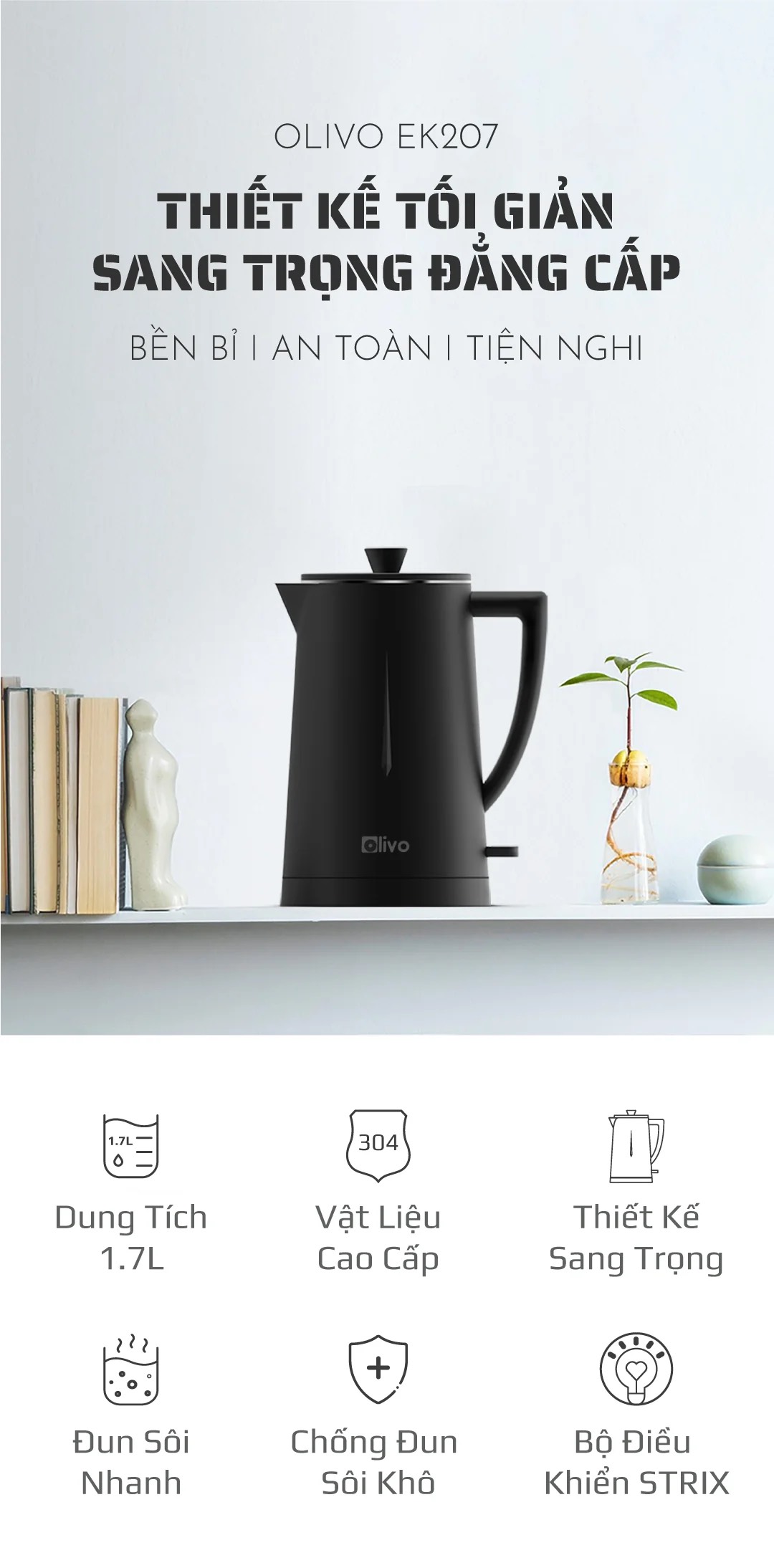 NHỮNG ƯU ĐIỂM VƯỢT TRỘI CỦA ẤM SIÊU TỐC OLIVO EK207