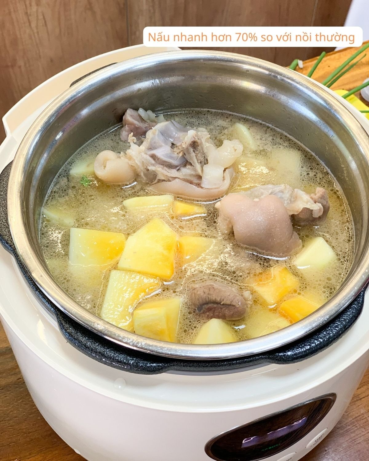 👍 Mẹ muốn nấu nhanh, nấu gọn thì sắm ngay em #nồi_áp_suất_Queen_S45 của nhà Snapbee ạ. Chỉ 10 phút là giò heo mềm tơi, thấm đều gia vị. Ưu điểm vượt trội của nồi áp suất Queen Snapbee S45: