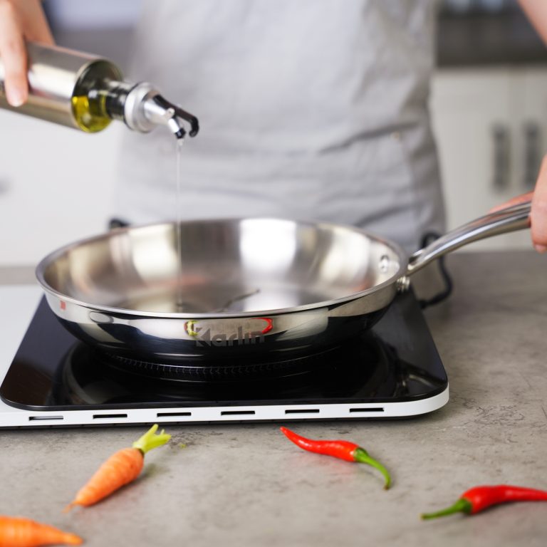 - Chảo Karlin có thể rim mặn, kho, rim chua,…cũng không sợ bong tróc lớp chống dính, vì chảo Karlin được chống dính tự nhiên.