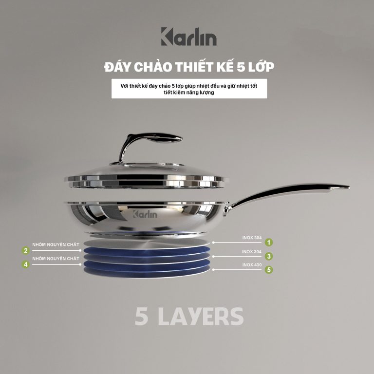- Lớp lõi được xen kẽ bởi các lớp nhôm cao cấp giúp dẫn nhiệt nhanh và tản đều khắp bề mặt+ Lớp bên trong lòng nồi: làm từ inox 304 cao cấp, không có lớp chống dính, giúp nhiệt lan tỏa đều khắp lòng nồi và thời gian giữ nhiệt lâu.