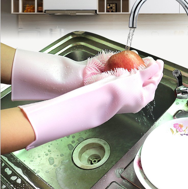 Với thiết kế lớp silicon dày giúp thay thế giẻ rửa bát, dễ dàng tạo bọt vệ sinh bát đĩa, chén đũa sạch sẽ. Đồng thời, với đặc tính không thấm nước, không thấm dầu, độ đàn hồi cao giúp thoải mái sử dụng găng tay trong thời gian dài.