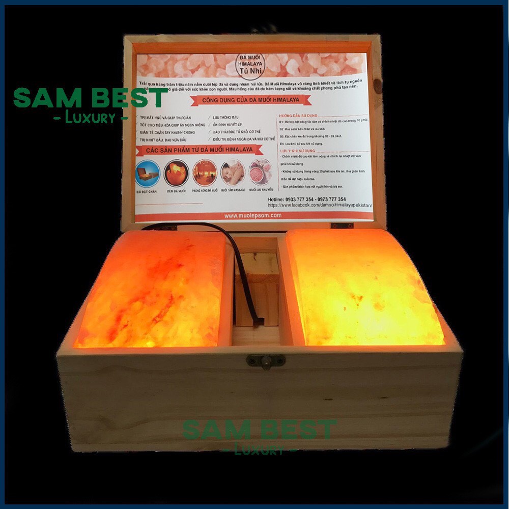 Hộp Đèn Đá muối massage chân là một sự kết hợp hoàn hảo giữa khối đá muối Himalaya được chế tác cẩn thận, đặt trong hộp bằng gỗ và được làm nóng bằng một bóng đèn bên dưới. Với cơ chế giải phóng ion âm, hơn 84 loại khoáng chất có trong đá muối, cùng sức nóng, sản phẩm này nhẹ nhàng massage và thay bạn chăm sóc, giúp đôi bàn chân thư giãn từ đó: