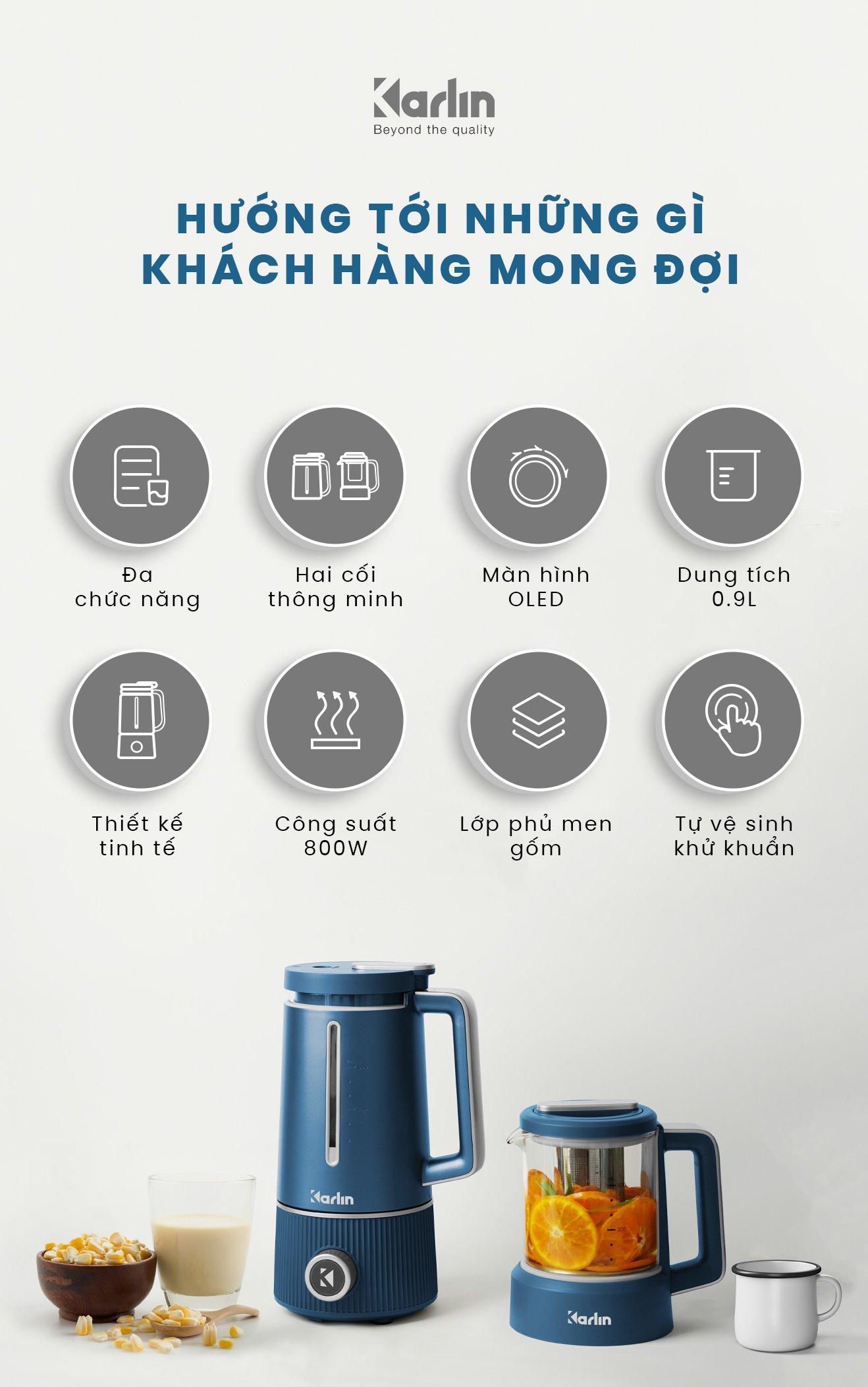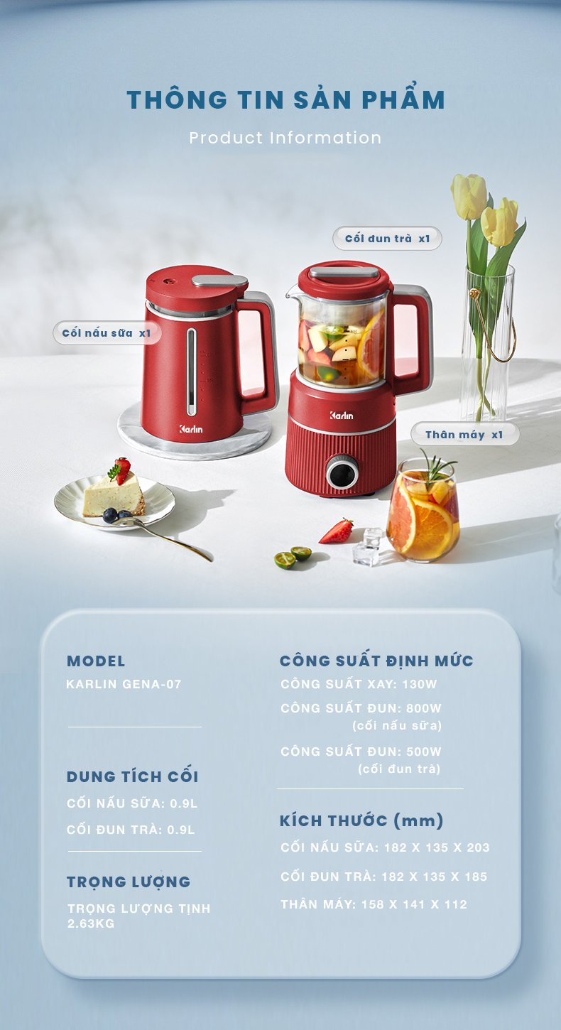 Máy làm sữa hạt KARLIN GENA07- Dung tích 900 ml- Thương Hiệu Đức - Bảo Hành 24 tháng