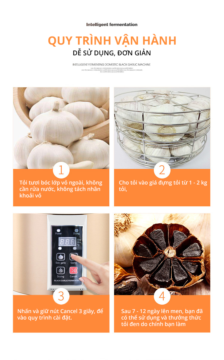 Lên men tỏi đen chỉ trong vòng 7 ngày và hoàn toàn tự động. Giải pháp đơn giản để có món dược liệu tỏi đen giá trị giàu dinh dưỡng, tốt cho sức khỏe nhưng chi phí lại thấp hơn nhiều so với việc mua tỏi đen bên ngoài.