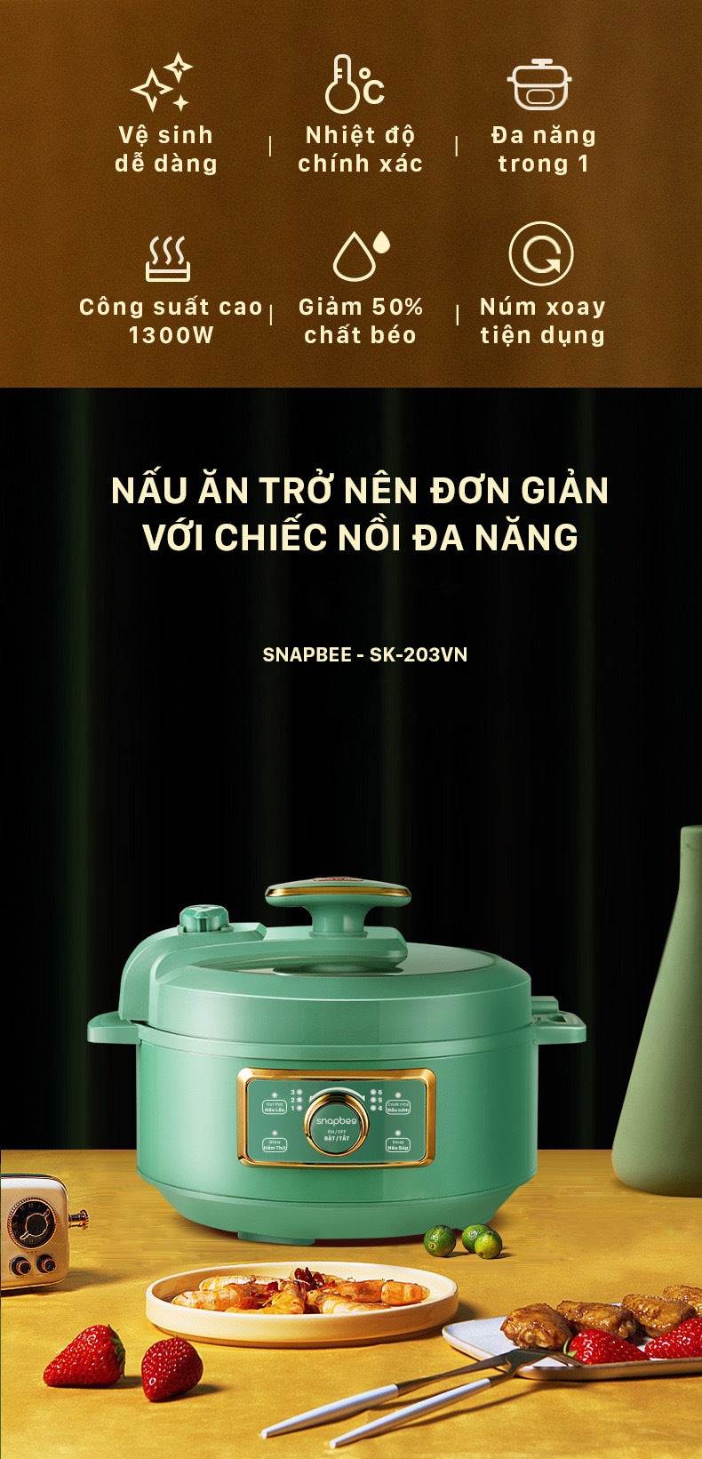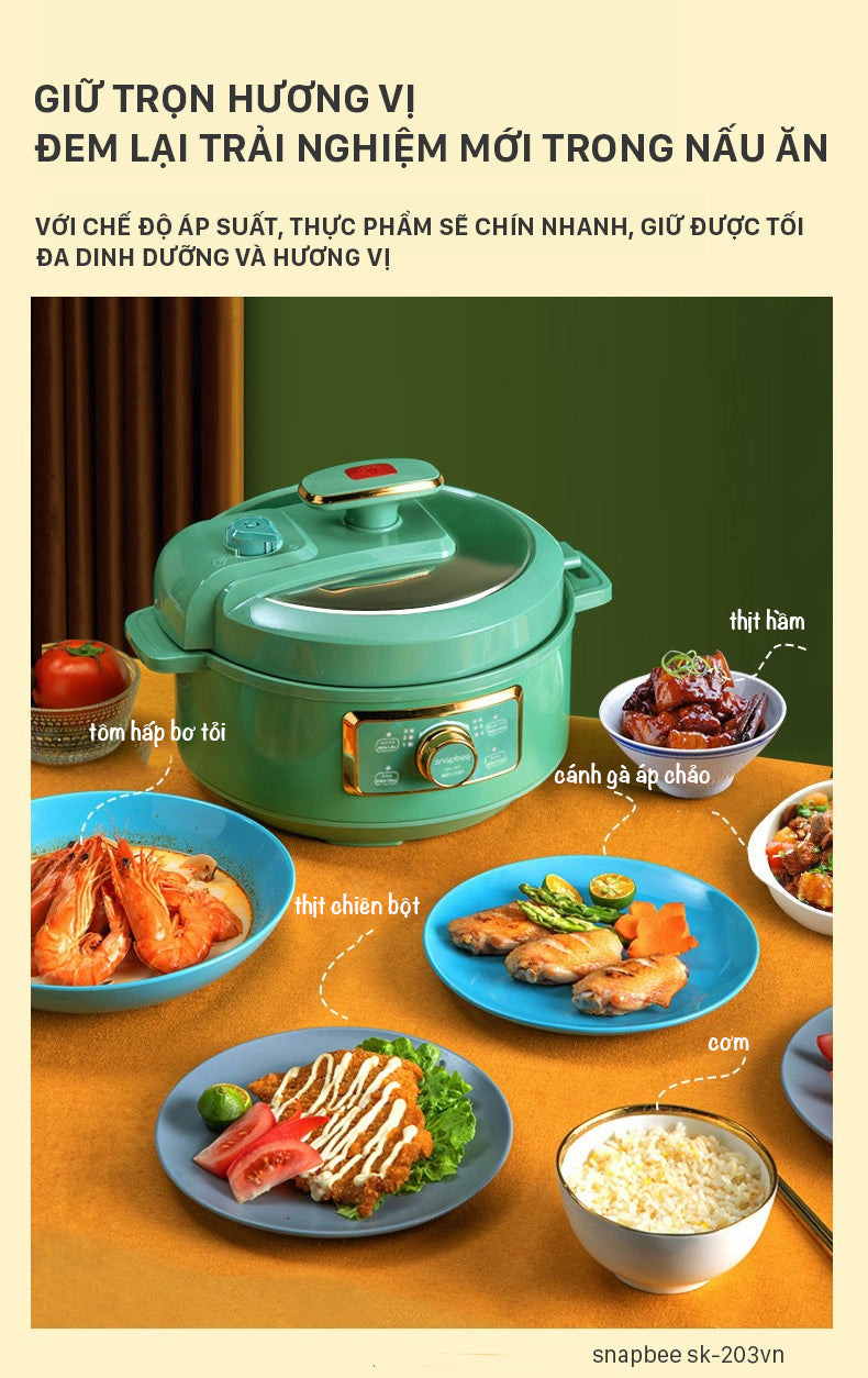 Nồi Áp Suất Đa Dụng SnapBee SK-203VN - Hầm Chiên Xào Nấu Đa Năng - Thương hiệu Mỹ