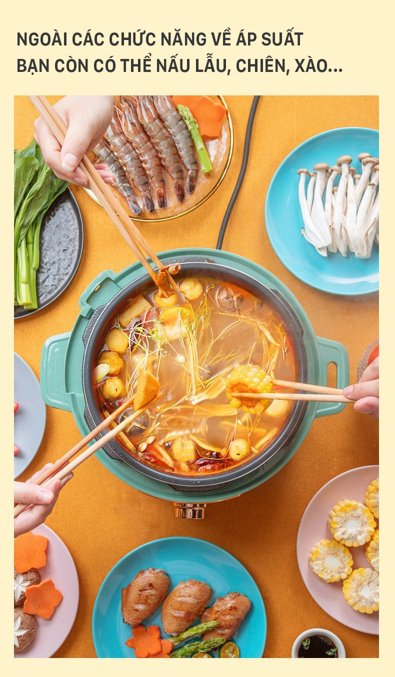 Bạn có thể : nấu cơm, sườn, cá, cháo, cháo ngũ cốc, cháo cho trẻ, thịt/gà, bò/cừu, giữ ấm, hâm nóng, hấp, hầm xương/hầm giò... và rất nhiều các món ngon khác có thể thực hiện bằng nồi áp suất. Không khó để bữa cơm gia đình trở nên đa dạng và hoàn thiện dưới sự hỗ trợ của sản phẩm này.