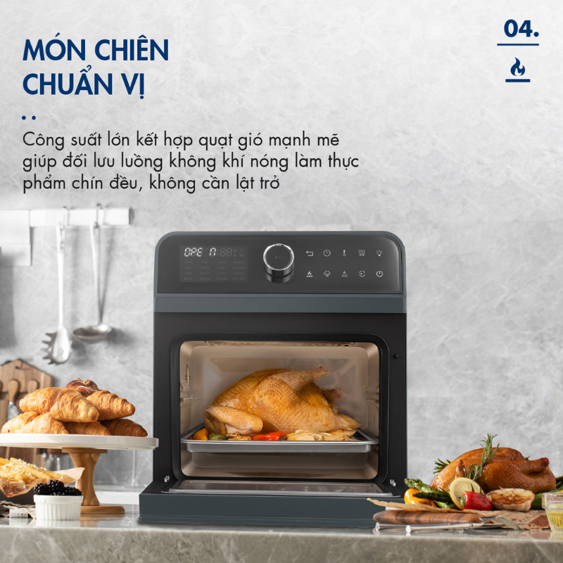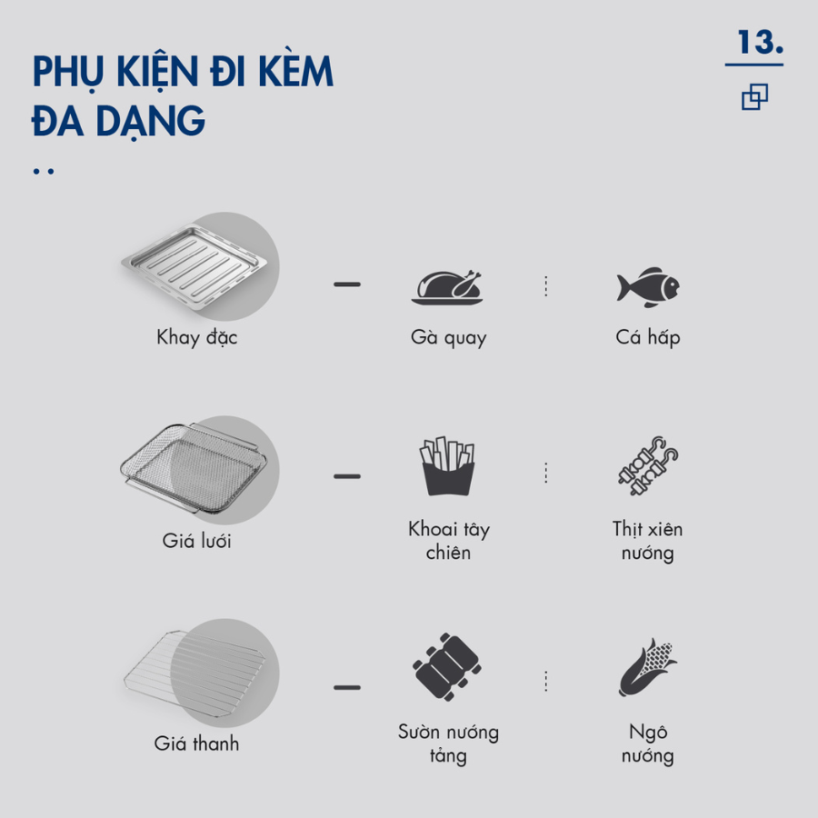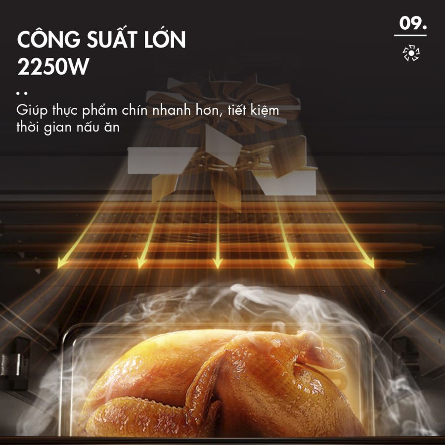 9. Công suất lớn 2250W giúp nấu ăn nhanh hơn, thực phẩm chín đều không cần lật trở.