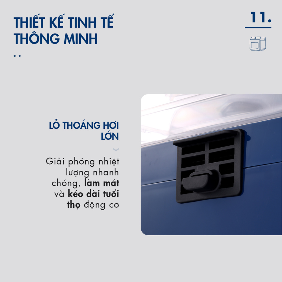 - Ngăn chứa nước thiết kế nằm ở mặt trên của máy, chất liệu nhựa trong suốt giúp dễ dàng quan sát lượng nước trong ngăn chứa và tiếp nước.