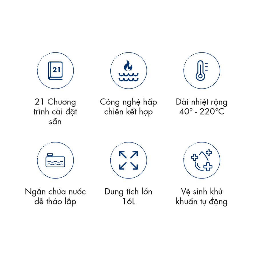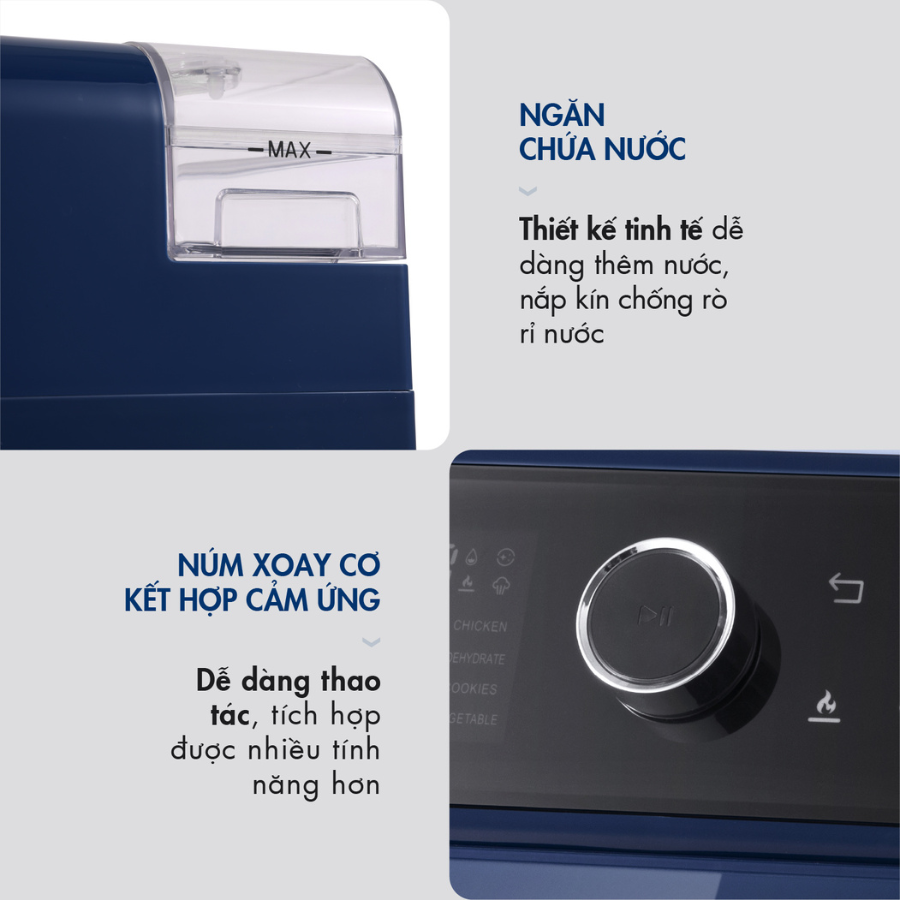 - Với công nghệ phun hơi nước siêu nhiệt giúp món ăn chín đều, giữ được độ mềm ẩm và vị ngọt tự nhiên của thực phẩm.