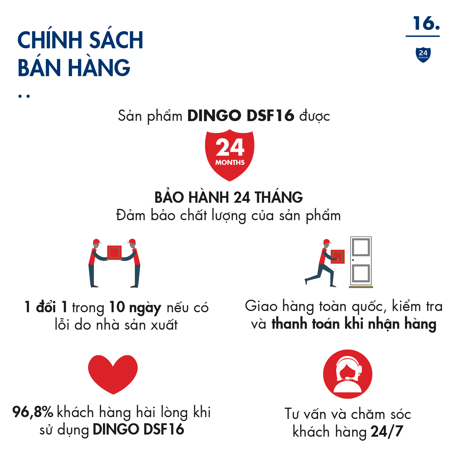 - 100% các chi tiết tiếp xúc trực tiếp với thực phẩm của DINGO DSF16 đều được làm từ INOX 304 được chứng nhận an toàn khi dùng với thực phẩm. Vừa an toàn, bền đẹp sáng bóng lại dễ dàng vệ sinh.