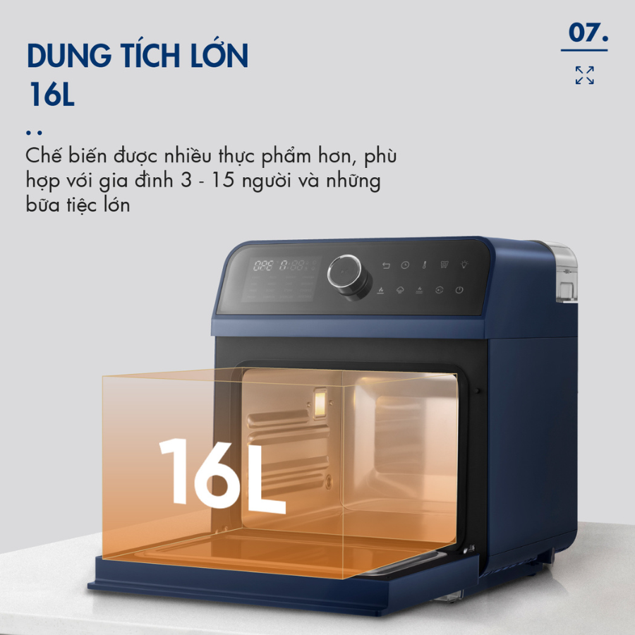 7. Dung tích lớn 16L: Chiên nướng được gà, vịt cả con