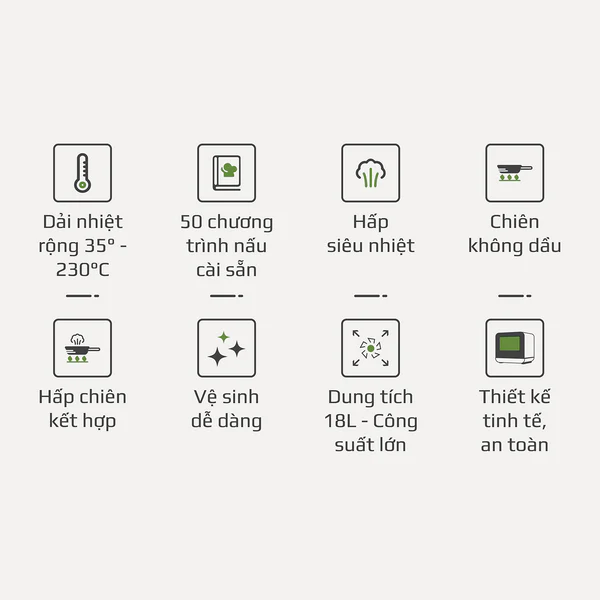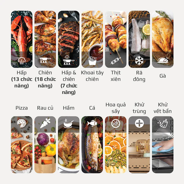 3. ĐỘT PHÁ CÔNG NGHỆ 4 TRONG 1: HẤP - CHIÊN KHÔNG DẦU - CHIÊN HẤP KẾT HỢP - HẦM