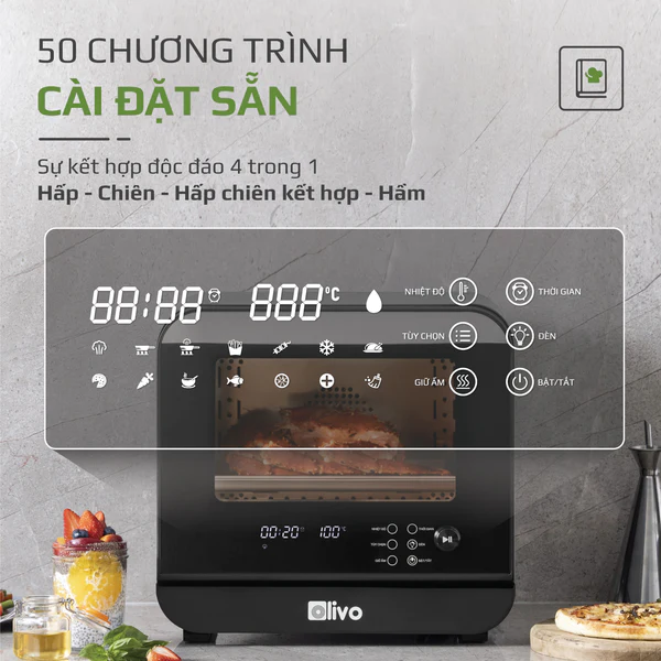 - Hiện nay duy nhất chỉ có trên OLIVO SF18 tính năng kết hợp Chiên hấp trong một chương trình nấu một trải nghiệm đỉnh cao mà quý khách hàng không thể có được khi sử dụng các sản phẩm khác trên thị trường.