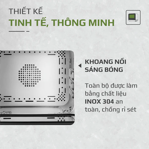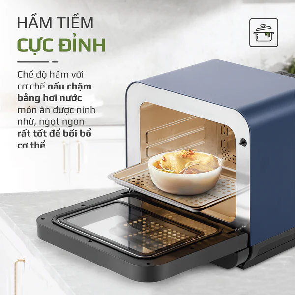 - Với công nghệ phun hơi nước siêu nhiệt giúp món ăn chín đều, giữ được độ mềm ẩm và vị ngọt tự nhiên của thực phẩm.