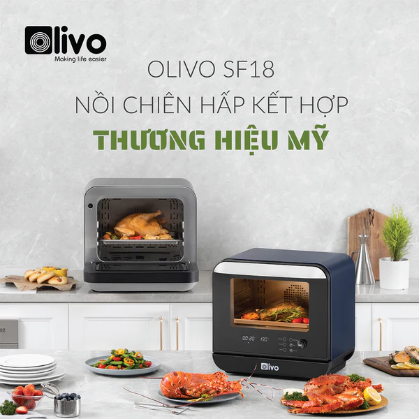- OLIVO - SF18 là sản phẩm nồi chiên hơi nước mới nhất của OLIVO được ra mắt trong những ngày gần đây. Đây là dòng sản phẩm mang tính đột phá công nghệ khi kết hợp 4 tính năng trong 1 chiếc máy, đó là tính năng Hấp - Chiên không dầu - Chiên hấp kết hợp - Hầm chỉ có trên OLIVO SF18 mà chưa từng có trên bất kỳ sản phẩm cùng loại nào trên thị trường.