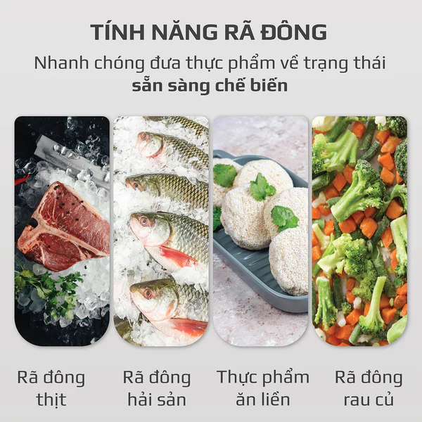 - Thực phẩm đông đá được rã đông một cách nhanh chóng nhưng không gây hiện tượng chín thực phẩm như những sản phẩm khác trên thị trường.