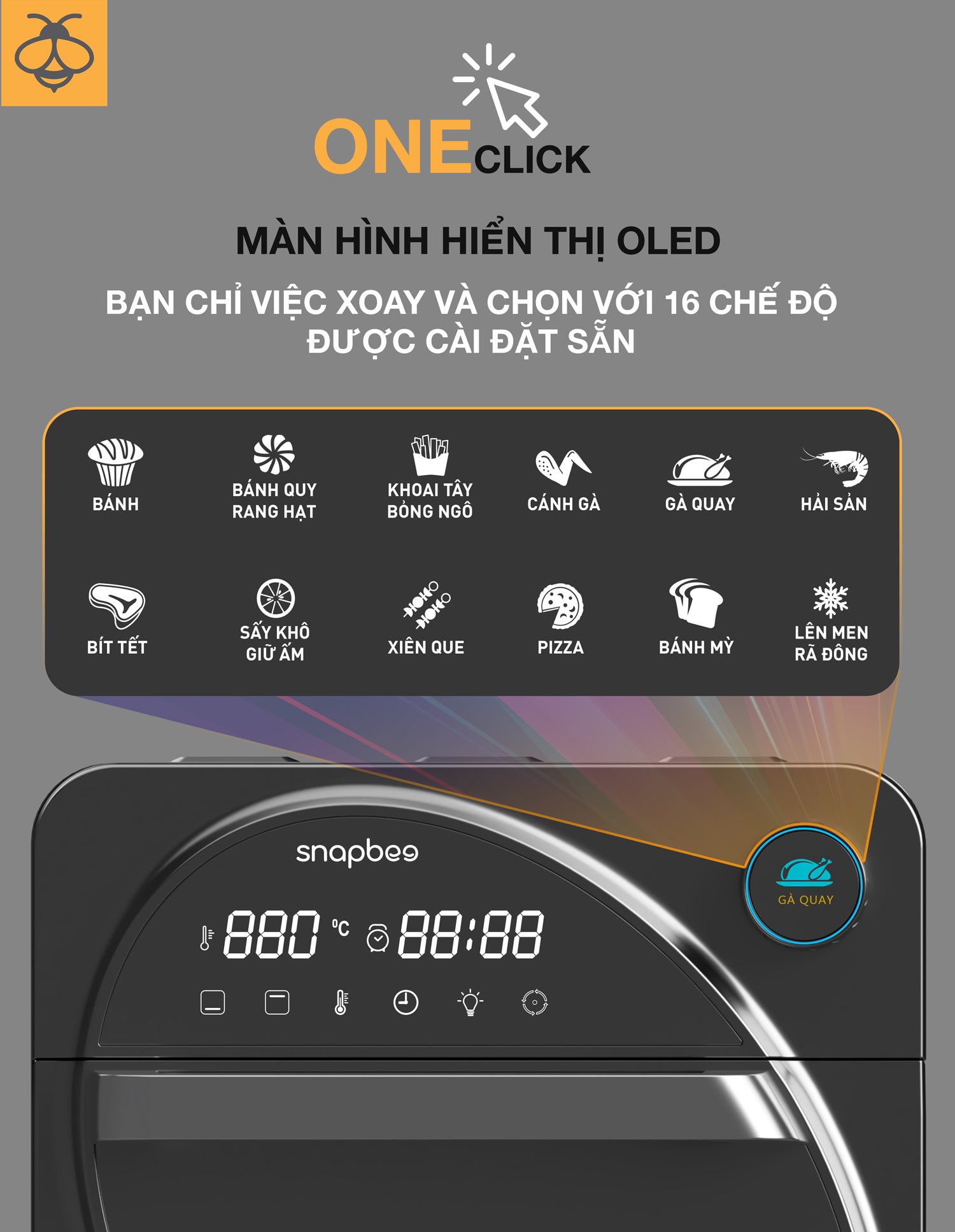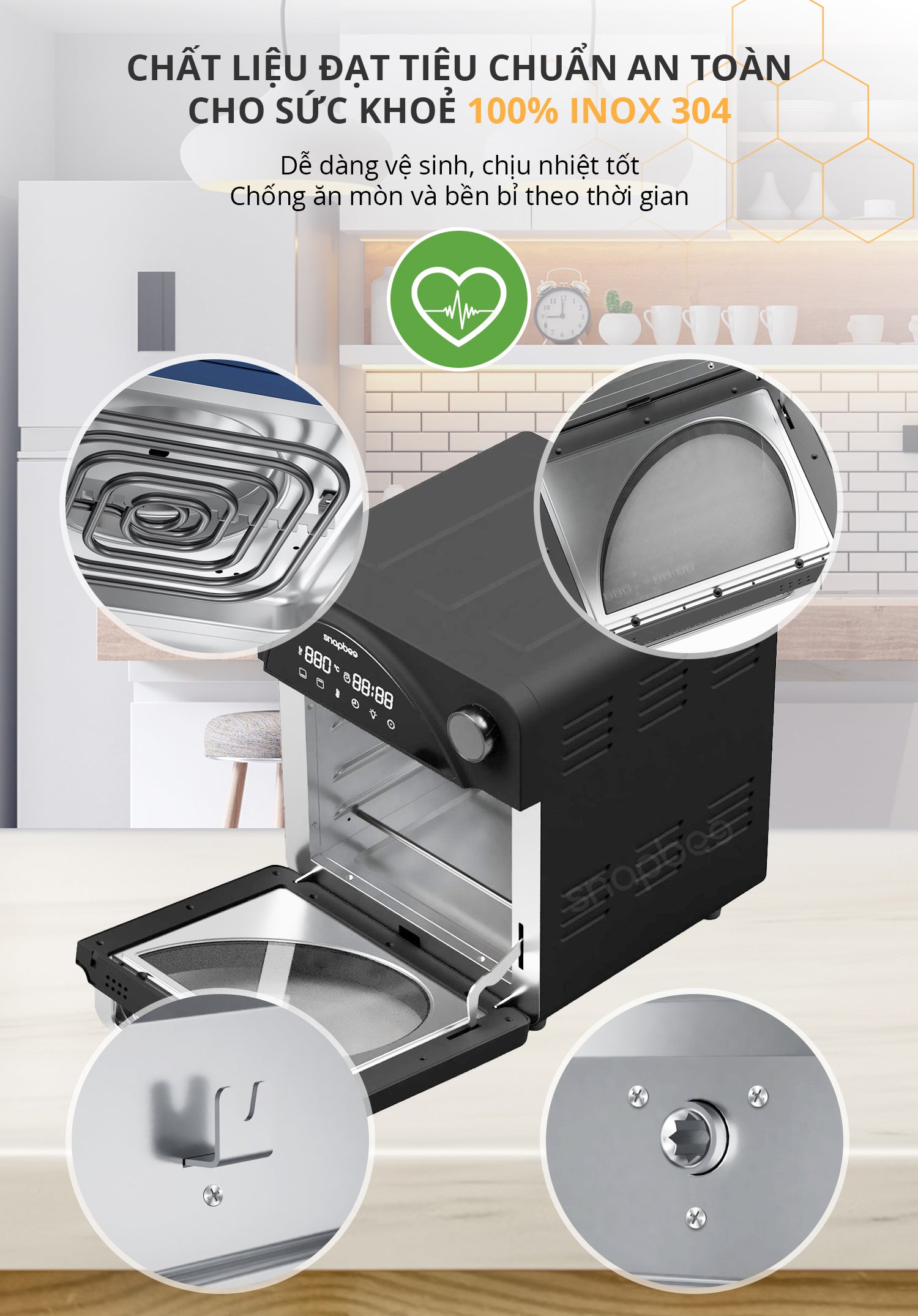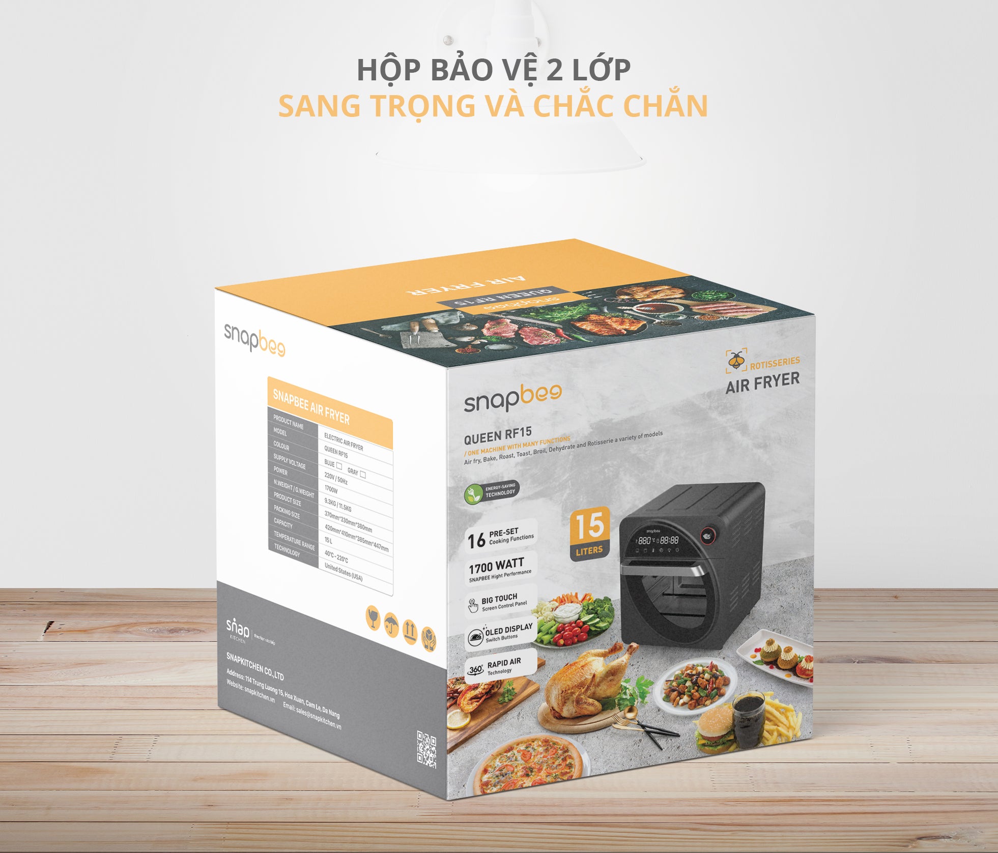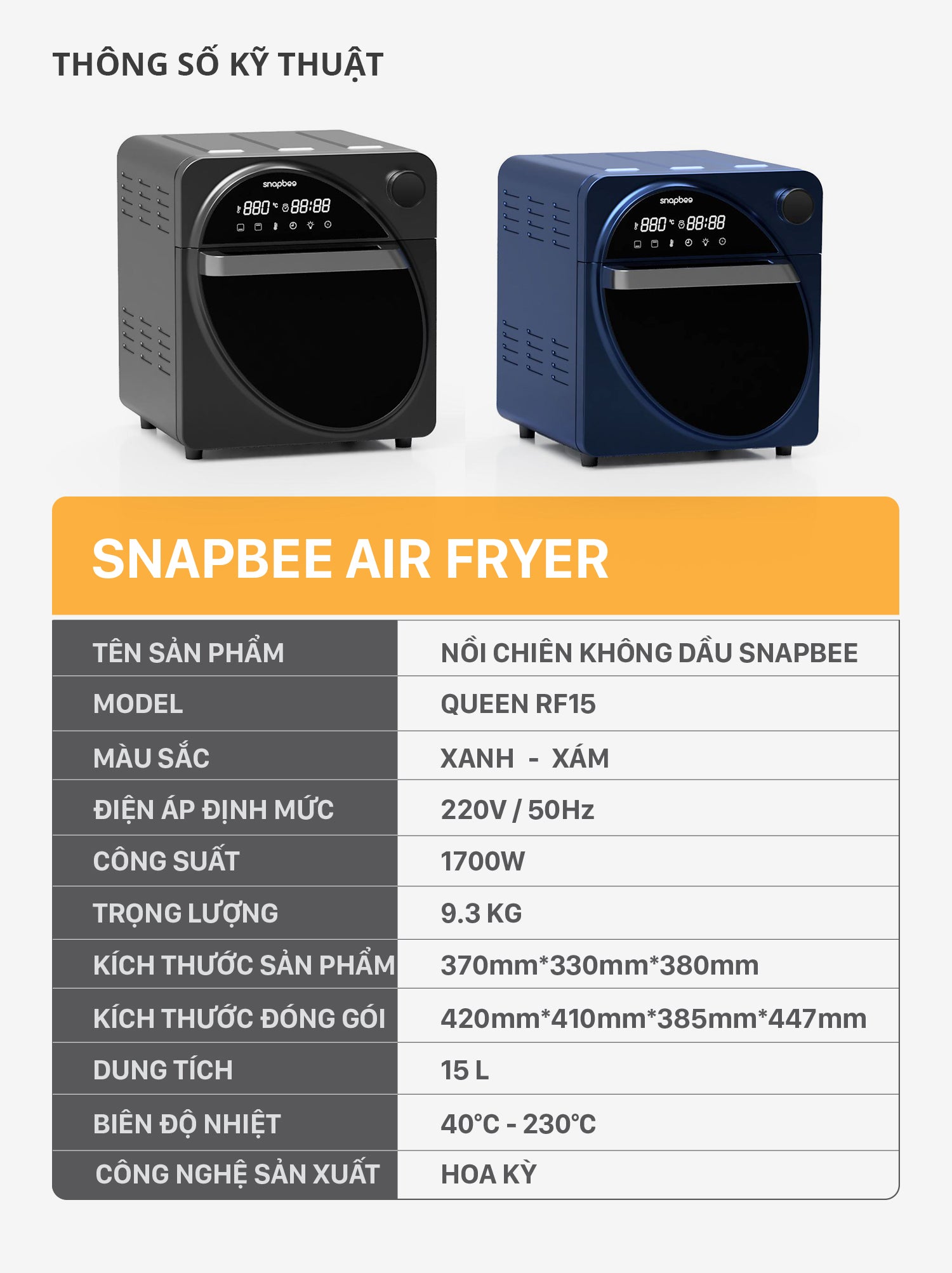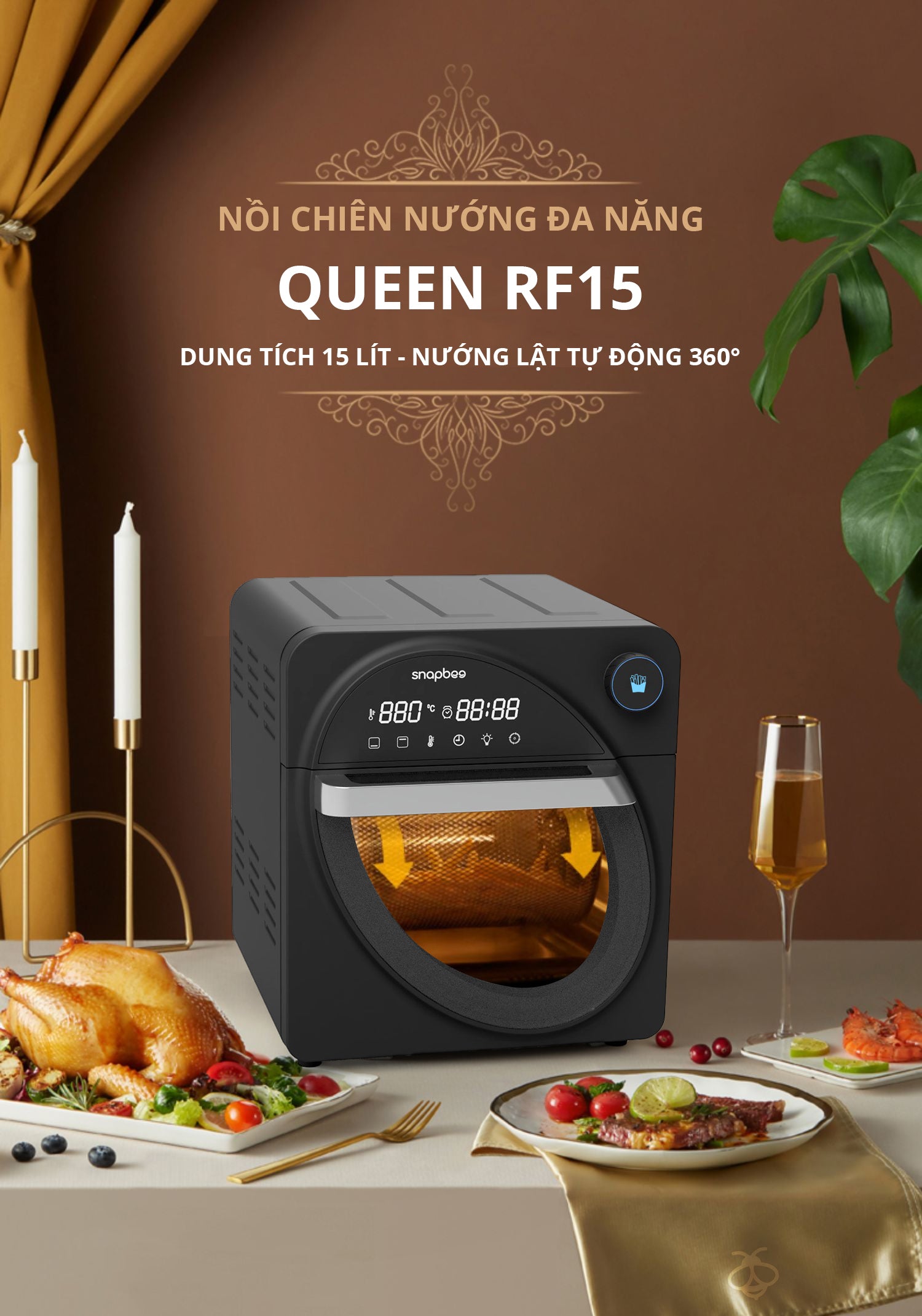 Nồi Chiên Không Dầu SnapBee - Model Mới Nhất QUEEN RF15 - 16 Chức Năng - Dung Tích 15L - Công Suất thực 1700W - Thương Hiệu Mỹ