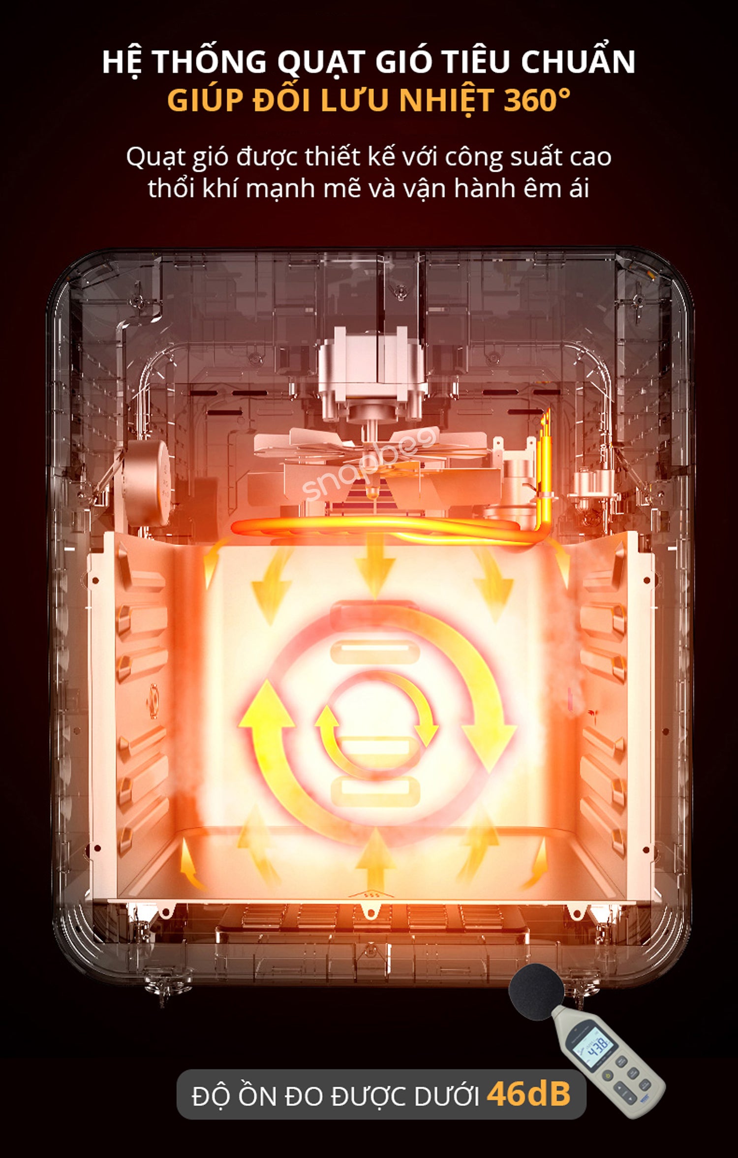 Do sự kết hợp giữa động cơ công suất lớn cùng với quạt motor cao cấp giúp cho quá trình làm chín thức ăn diễn ra êm ái, không gây tiếng ồn khó chịu