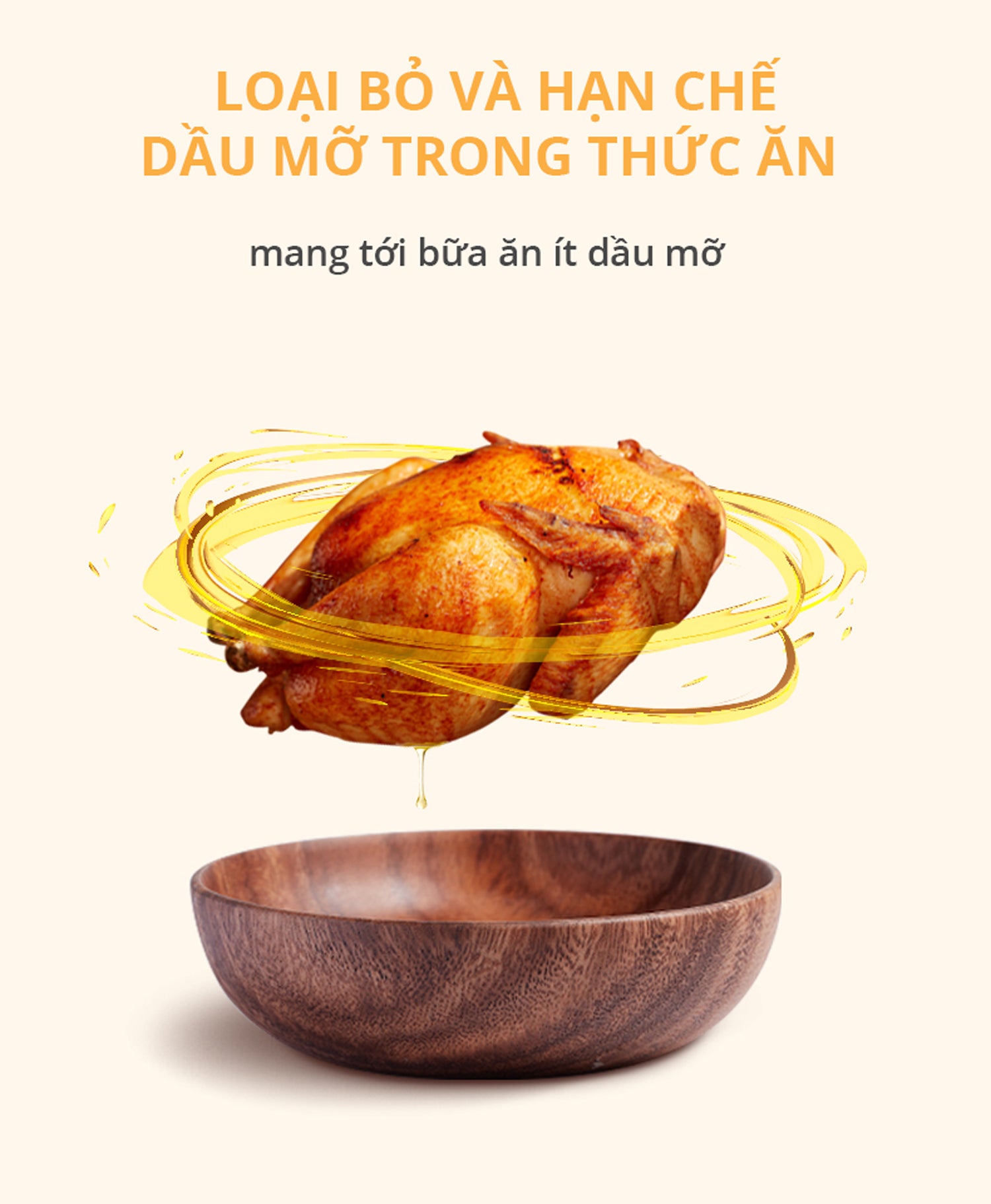 - Dung tích siêu khủng và giá đỡ lưu thông không khí 3 lớp - Chiên gà, vịt nguyên con lên đến 3kg vô cùng dễ dàng và tiện lợi