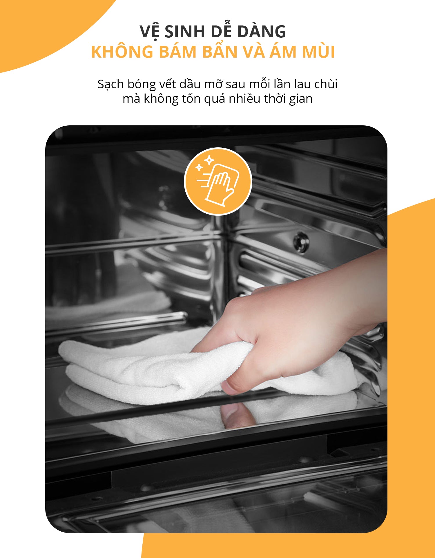 Cửa lò cách nhiệt 2 lớp kính giúp an toàn hơn khi sử dụng trong gia đình.
