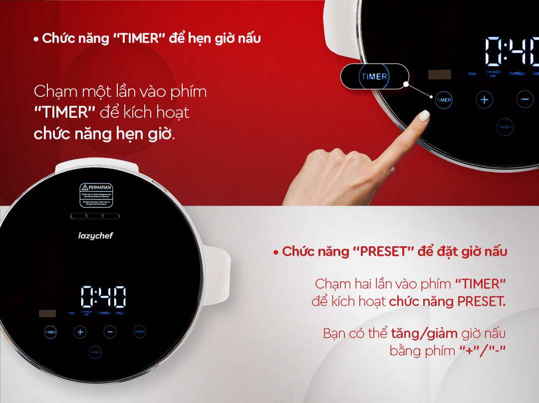 5. Tính năng hẹn giờ giúp bạn hoàn toàn chủ động được thời gian nấu nướng.