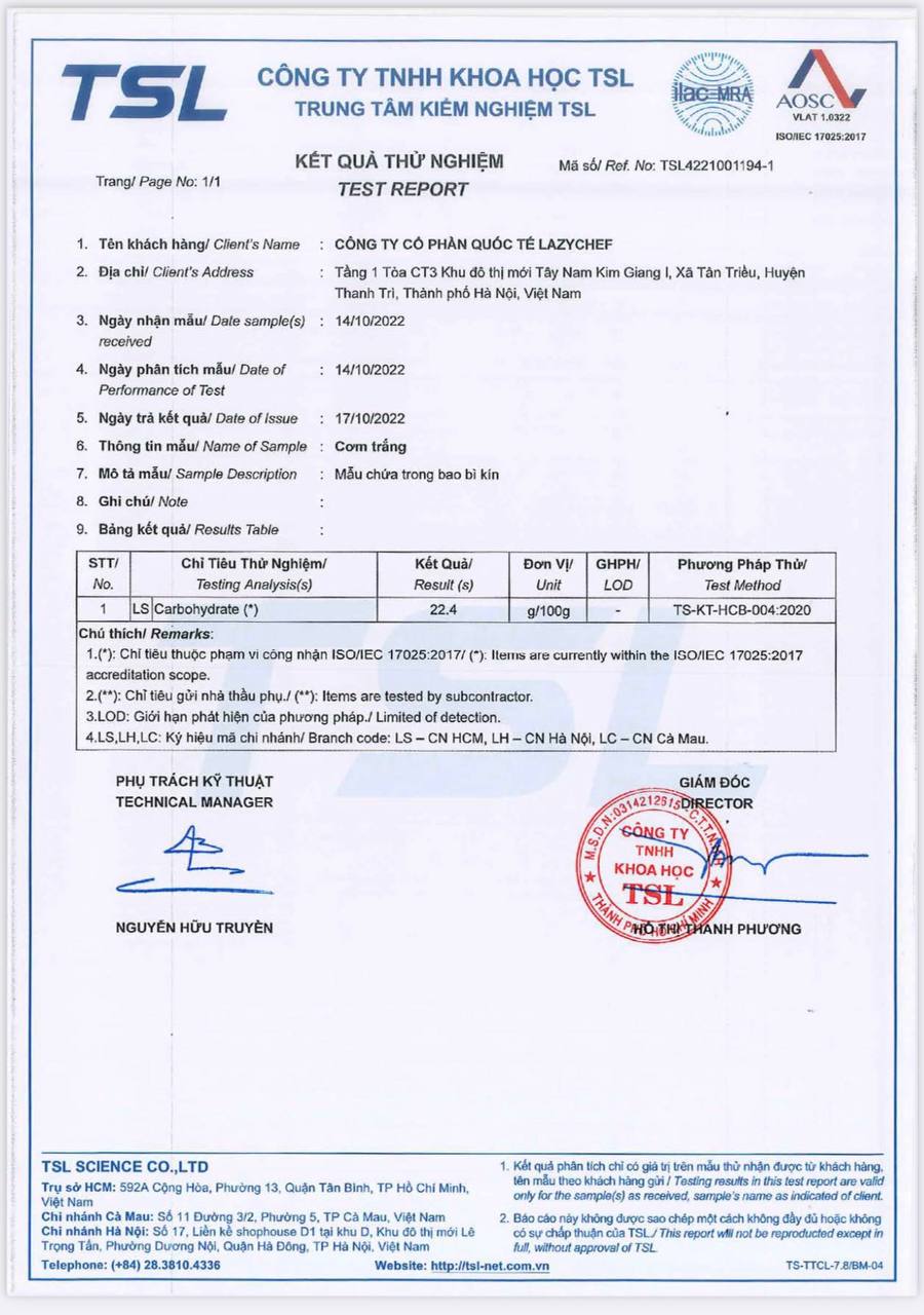 Thấu hiểu điều này, Lazychef đã nghiên cứu và cho ra mắt sản phẩm NỒI CƠM LOWCARB LAZYCHEF 4in1. Với công nghệ hiện đại từ Đức, sản phẩm có thể làm giảm tới 20% lượng carb trong cơm, mà vẫn giữ được vị ngon trọn vẹn. Sản phẩm đã được kiểm định chặt chẽ tại Trung tâm kiểm nghiệm quốc gia TSL.